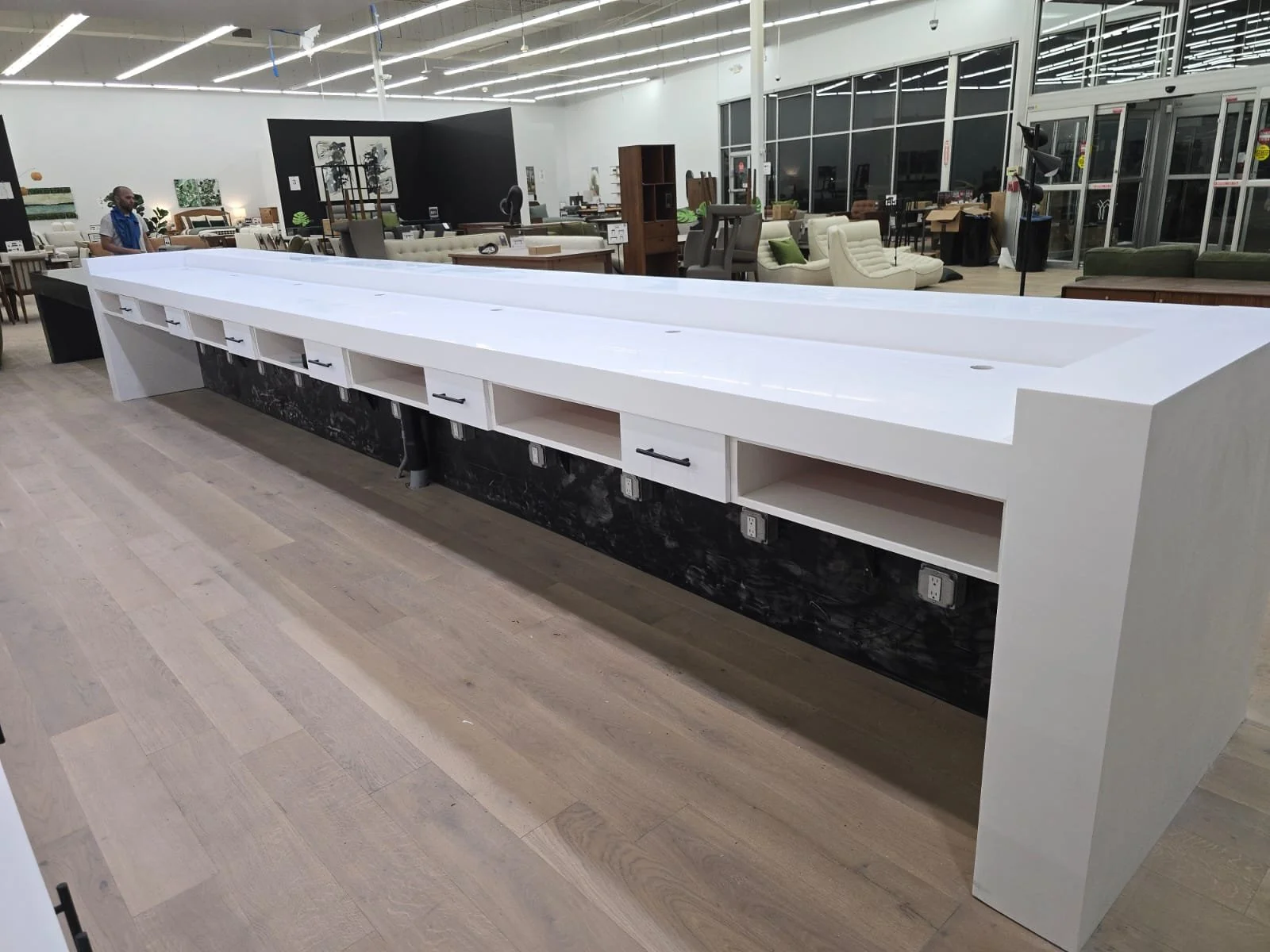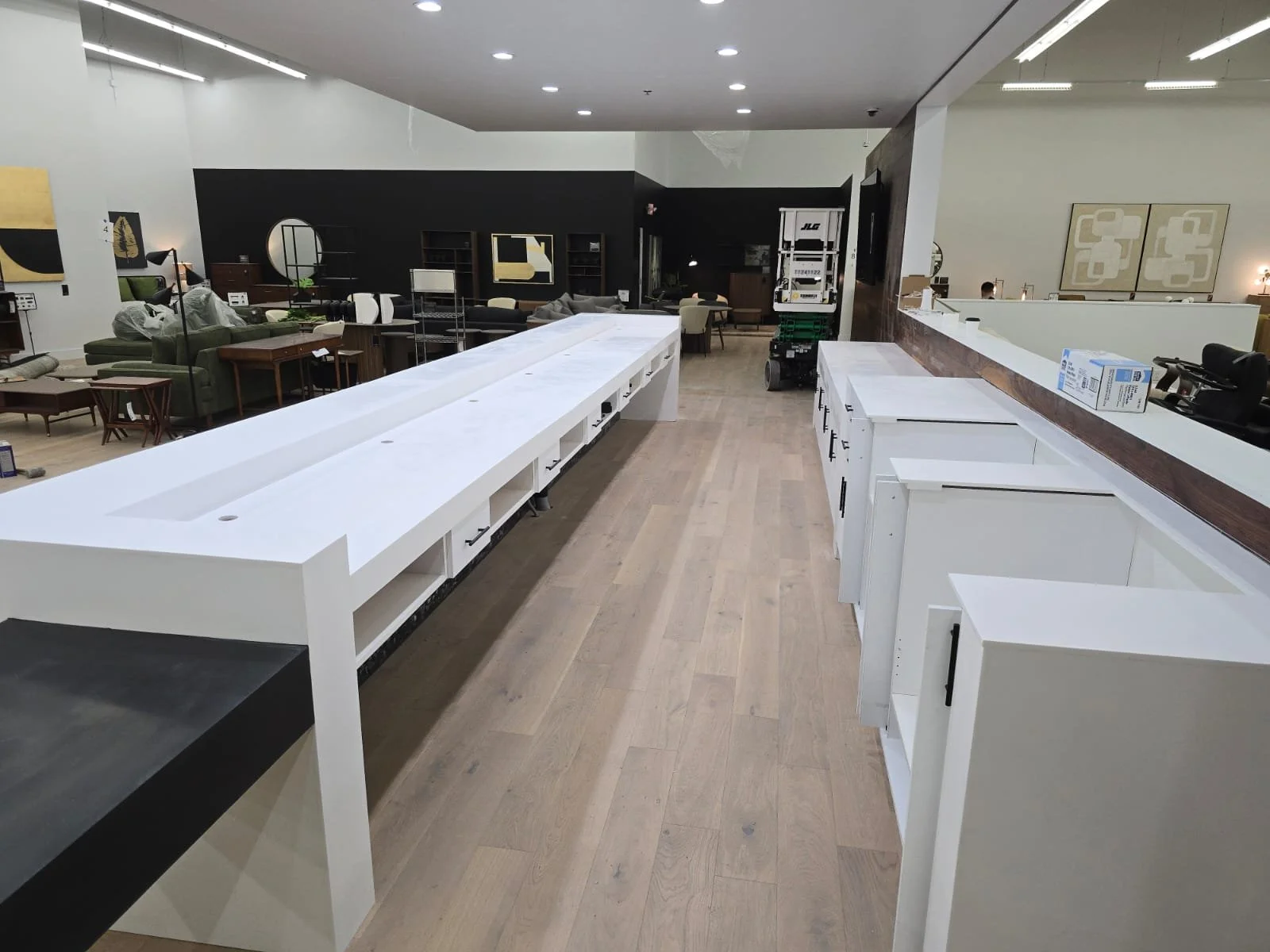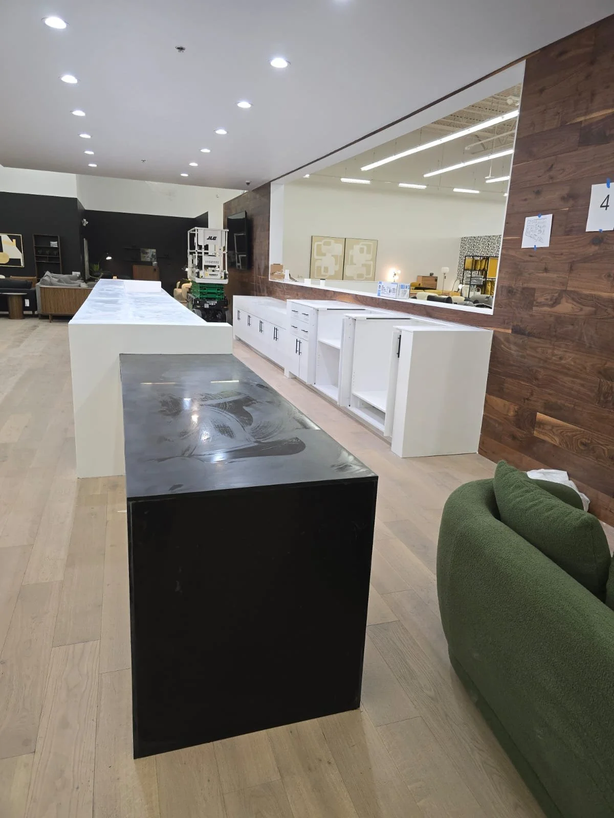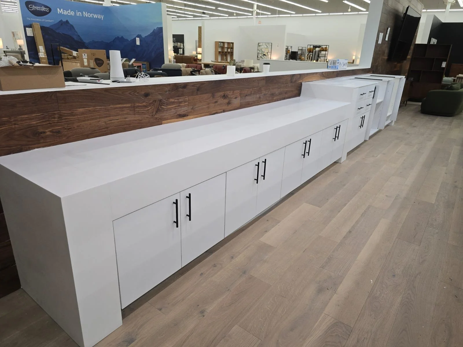 The project involved the comprehensive fabrication and installation of transaction counters and a reception area for a commercial client. Our team executed precise millwork tailored to the space, utilizing durable materials that meet both aesthetic and functional requirements. The design integrated seamless countertop surfaces optimized for customer interaction, ensuring accessibility and efficient workflow. Installation was completed on schedule, coordinating closely with other trades to maintain project timelines and quality standards. The finished reception area presents a professional and welcoming environment, reflecting the client’s brand identity and supporting daily operational needs.