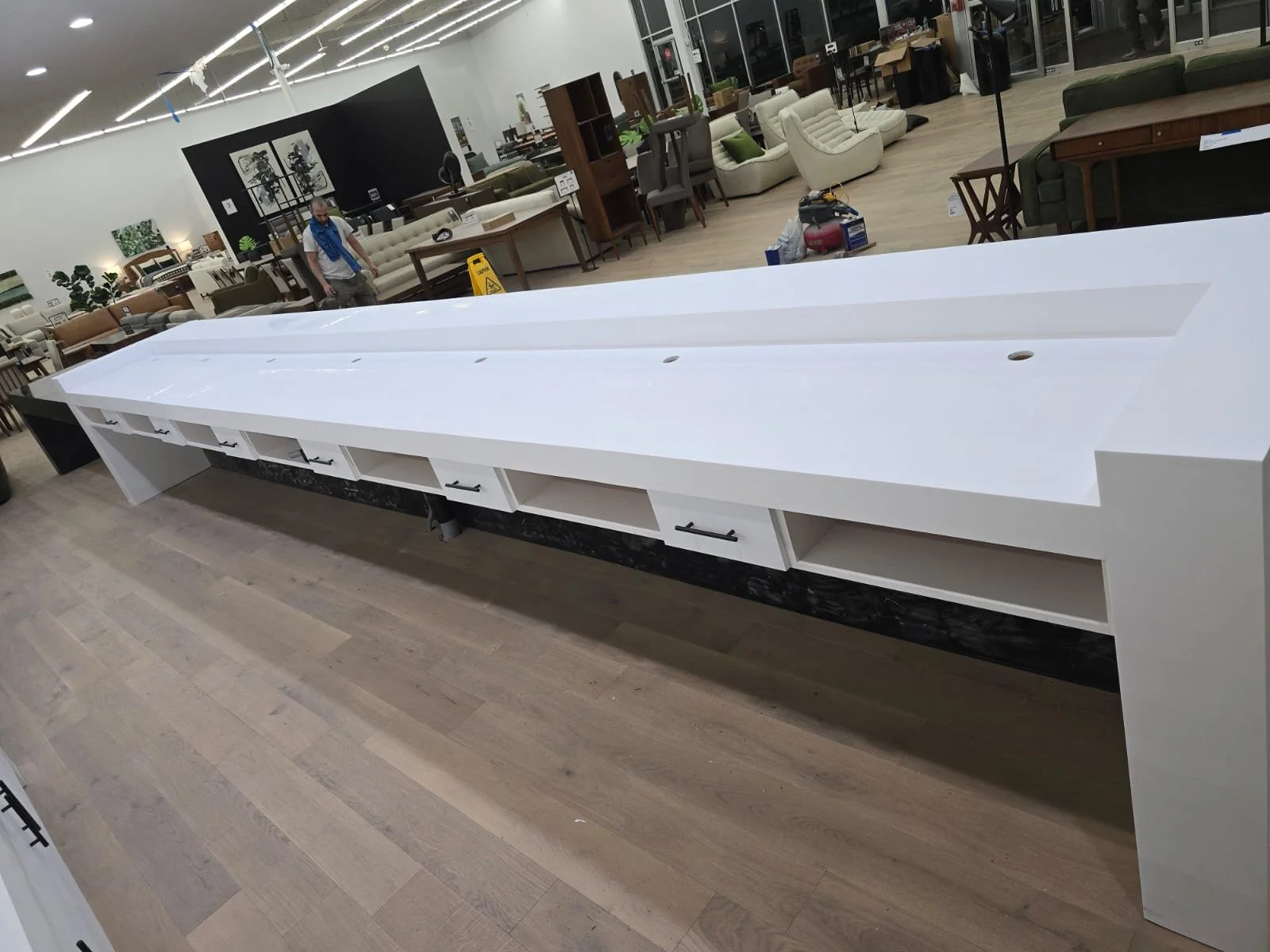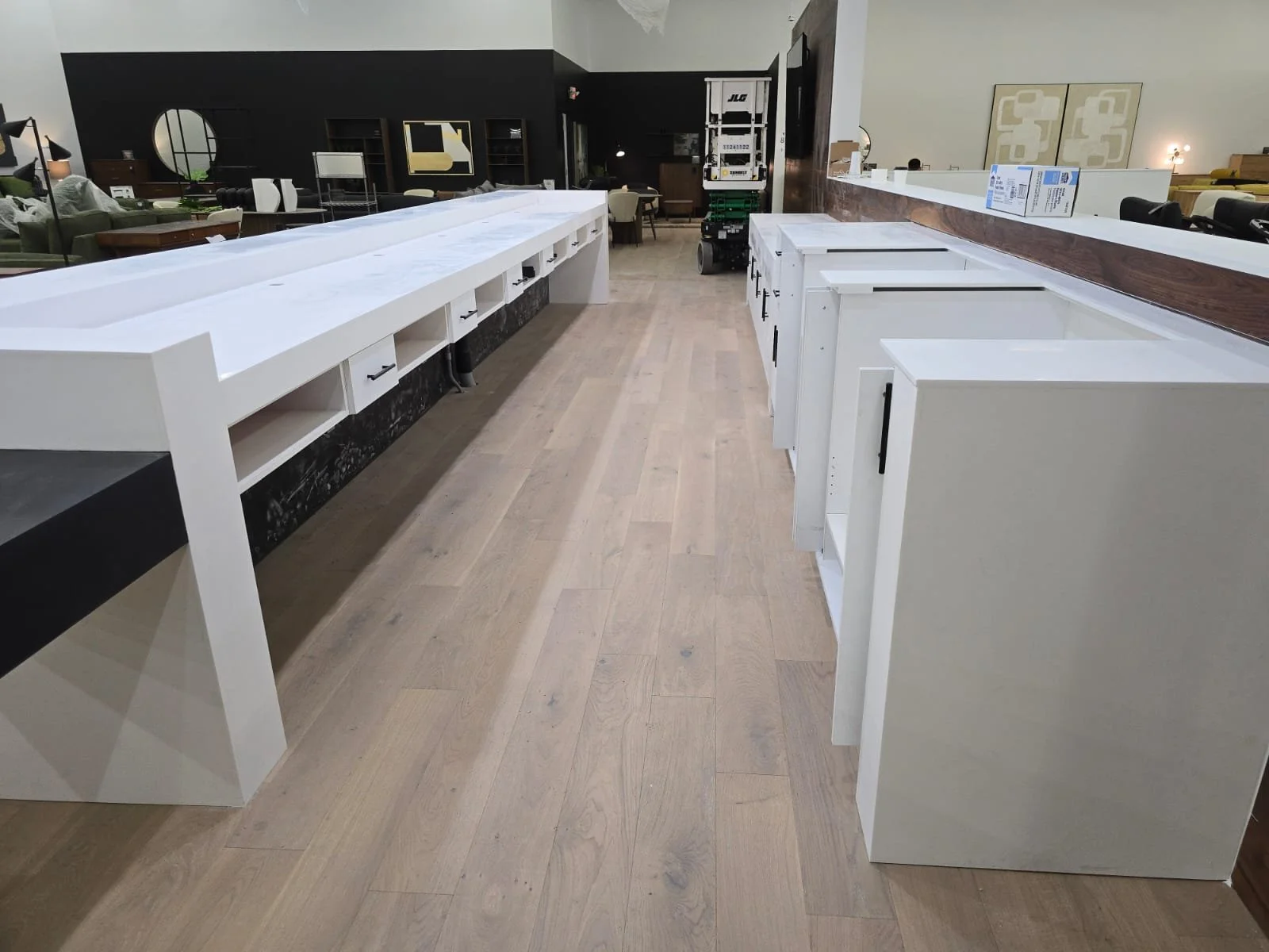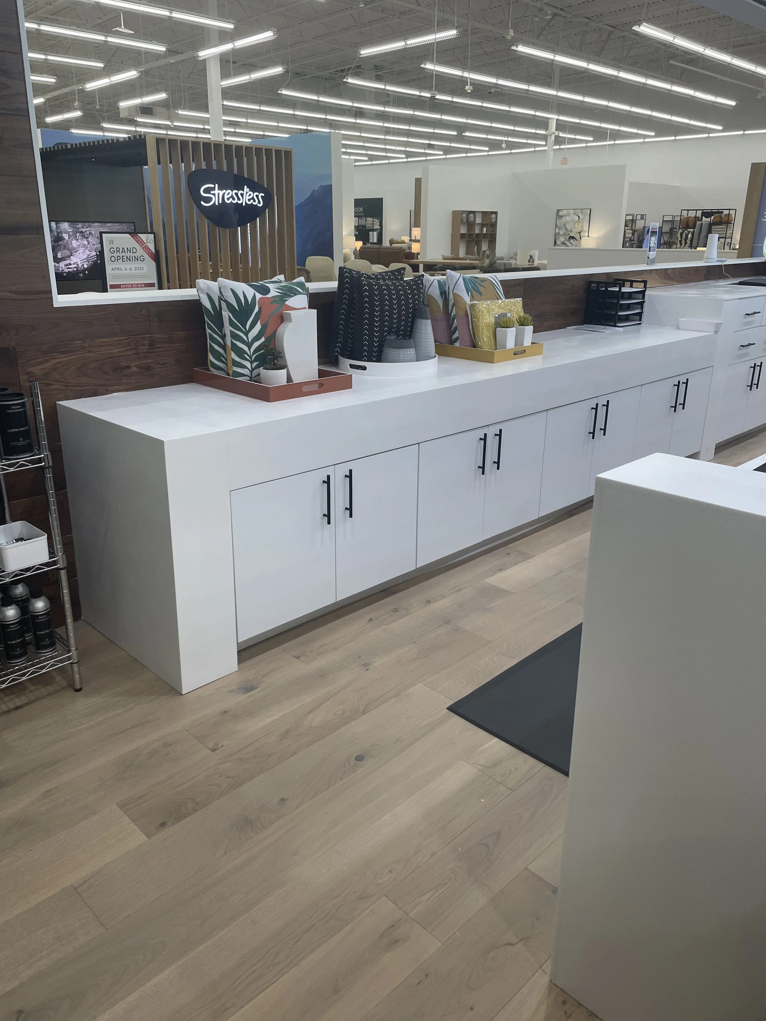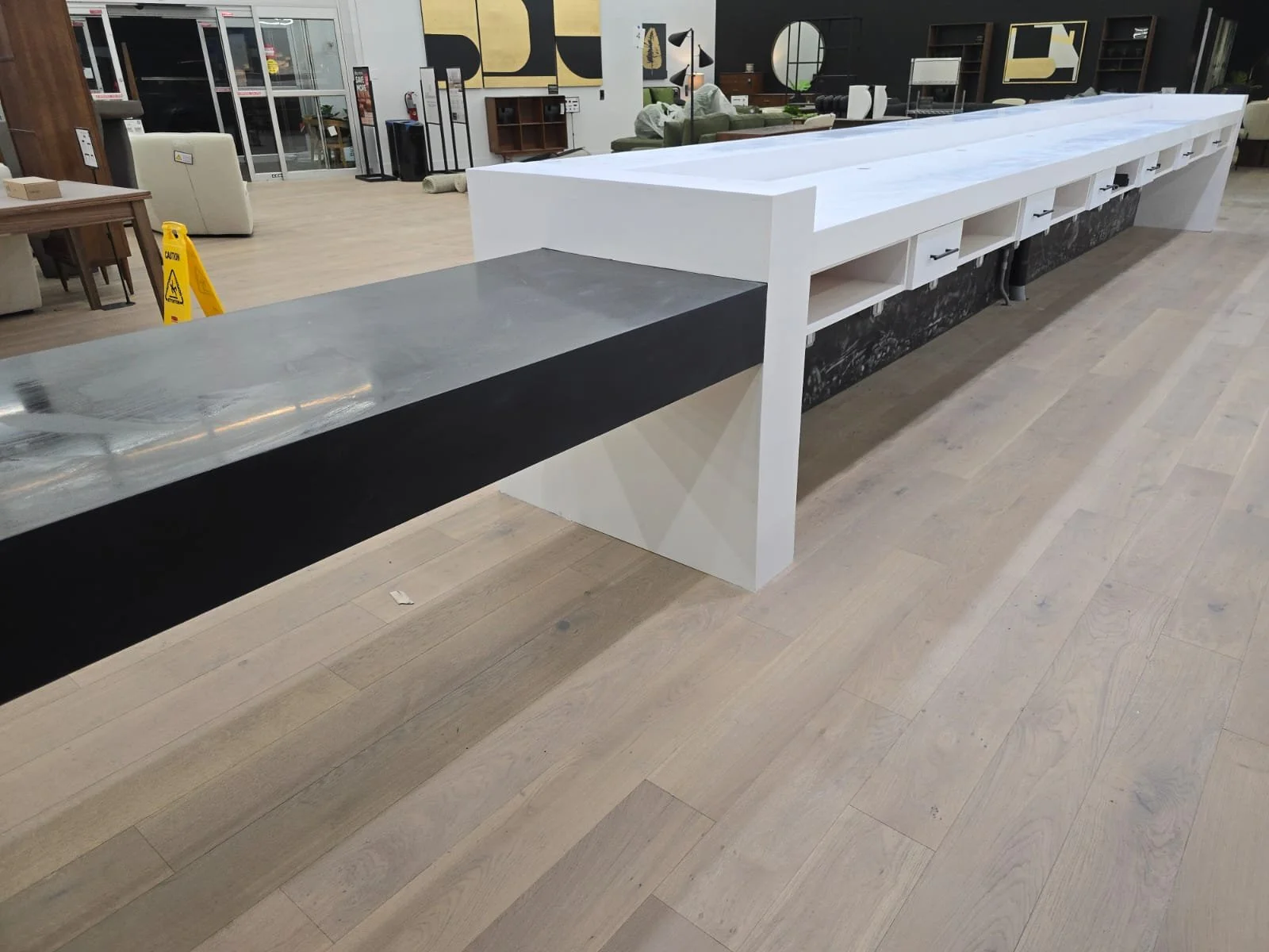 The project involved the comprehensive fabrication and installation of transaction counters and a reception area for a commercial client. Our team executed precise millwork tailored to the space, utilizing durable materials that meet both aesthetic and functional requirements. The design integrated seamless countertop surfaces optimized for customer interaction, ensuring accessibility and efficient workflow. Installation was completed on schedule, coordinating closely with other trades to maintain project timelines and quality standards. The finished reception area presents a professional and welcoming environment, reflecting the client’s brand identity and supporting daily operational needs.